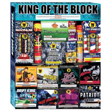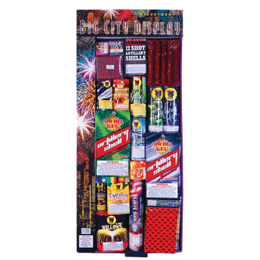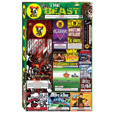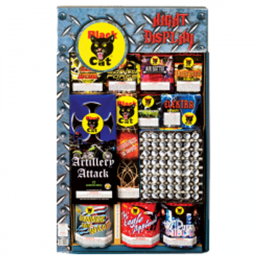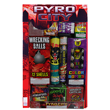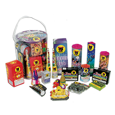 An all aerial assortment with (4) 500 gram cakes and (12) 200 gram cakes. 333 Total Shots